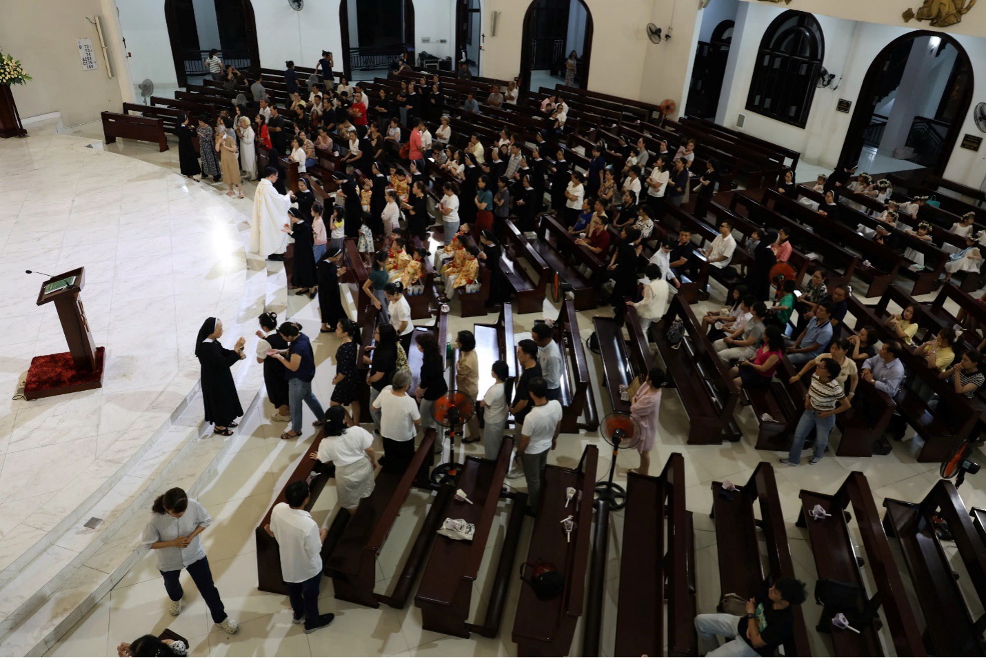 Kết thúc Thánh lễ, cộng đoàn cung nghinh Thánh Thể về Nhà Tạm phụ trong bầu khí thinh lặng và cầu nguyện.