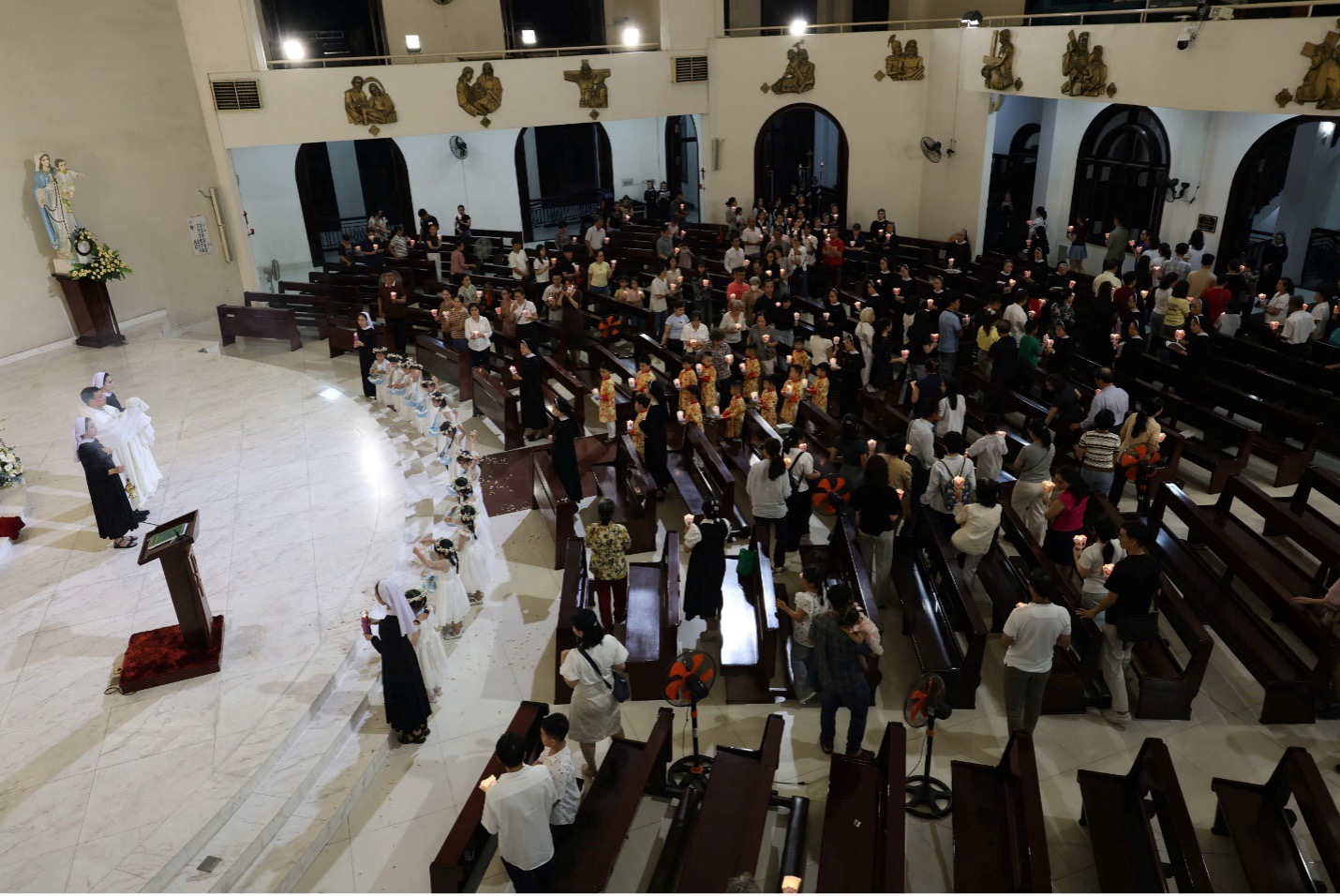 Kết thúc Thánh lễ, cộng đoàn cung nghinh Thánh Thể về Nhà Tạm phụ trong bầu khí thinh lặng và cầu nguyện.